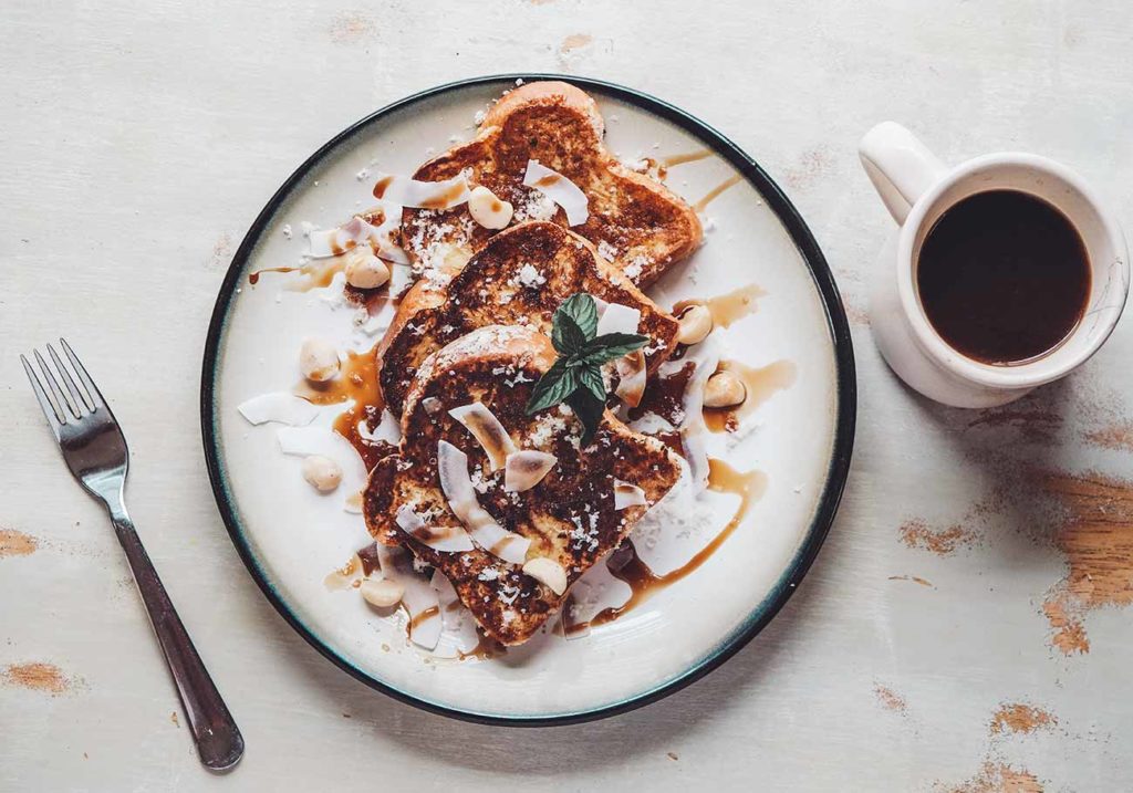 Cinnamon french toast with cream cheese glaze and berry syrup